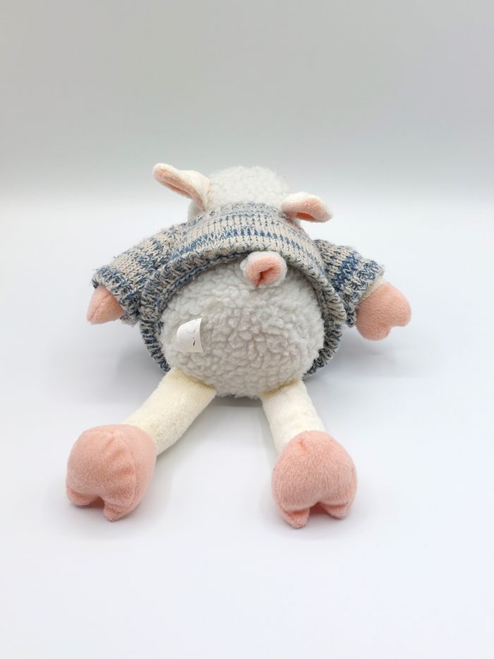 Peluche doudou mouton blanc avec pull PLAY BY PLAYTOYS 2010 pattes rose 26 cm - photo numéro 7