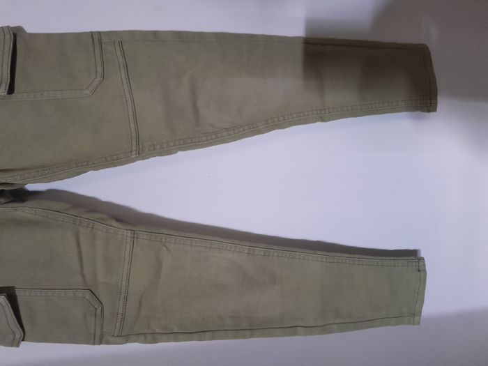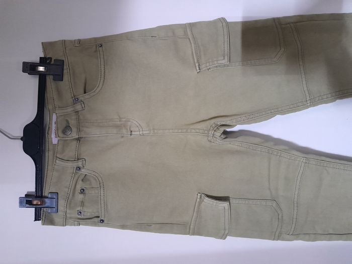 Jean, 5 poche + 2 sur les cuisse Longueur : 98cm Taille en cm : 34 Matière : 76 % Coton, 23 % Polyester, 1 % Elasthanne