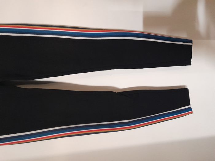 Legging, avec bande sur les côté, élastique à la taille Longueur : 88cm Taille en cm : 32 Matière : 96 % Polyester, 4 % Elasthanne Marque : sans étiquette