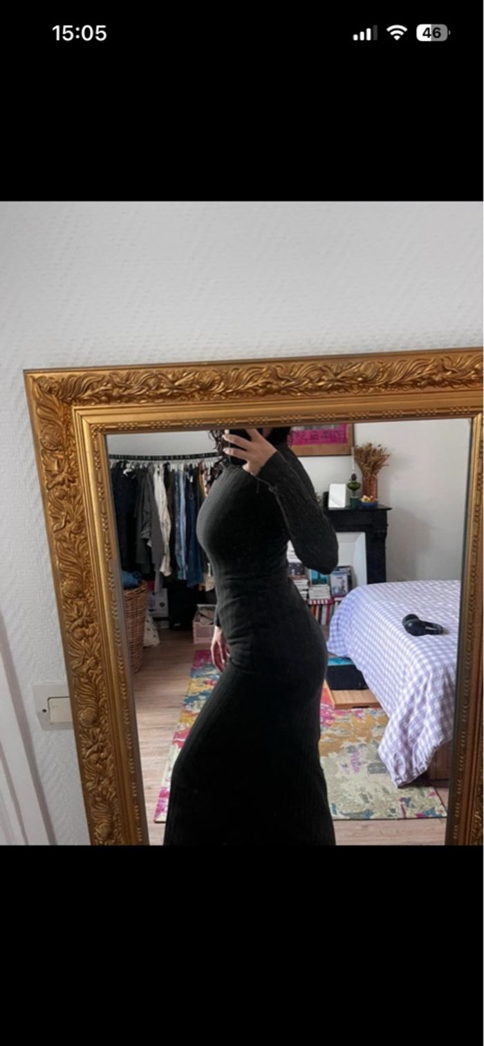 robe longue, moulante verte, manches longues