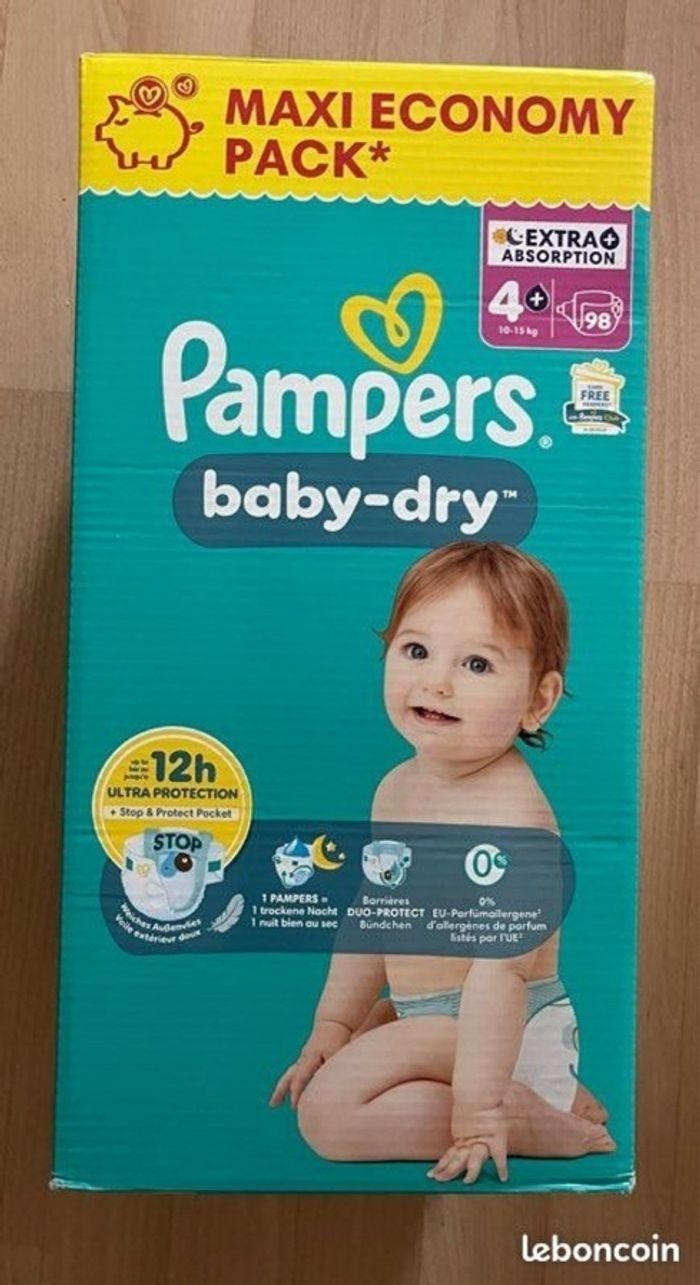 Vends carton de 98 couches Baby dry pampers taille 4+ Neuf jamais ouvert