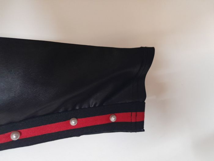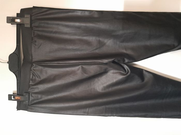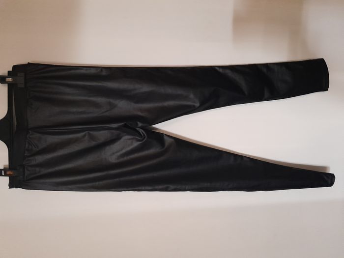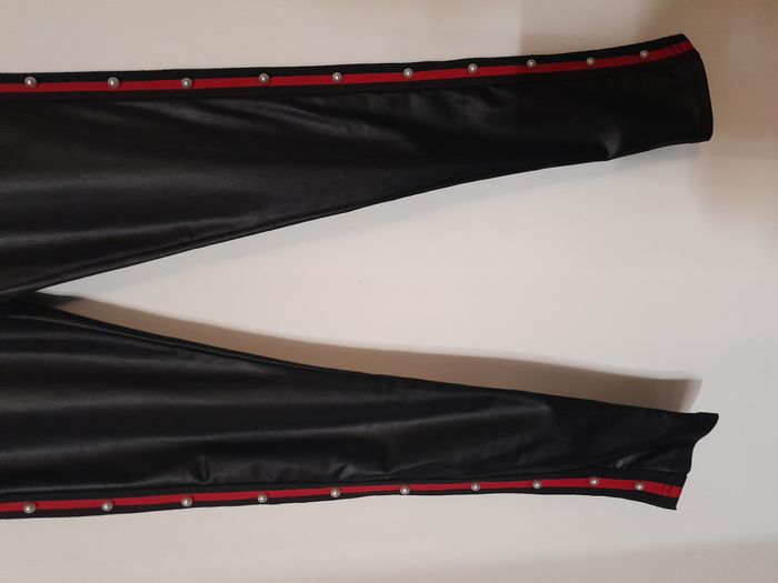 Legging, bande sur les côté avec perle, façon simili, élastique à la taille Longueur : 91cm Taille en cm : 32 Matière : 85 % Polyamide, 15 % Elasthanne Marque : sans étiquette