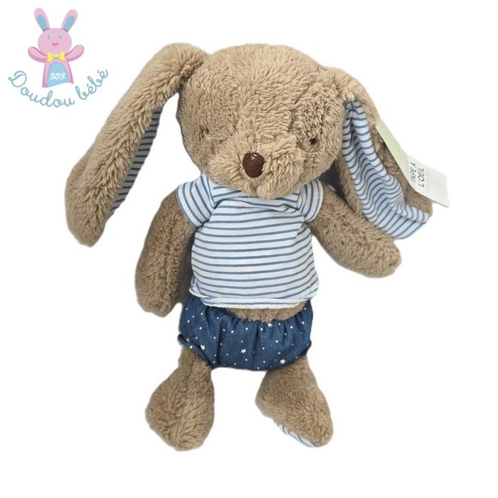 Doudou Lapin beige T-shirt rayé bleu short étoiles TAPE A L'OEIL TAO