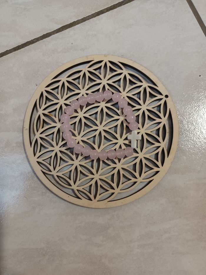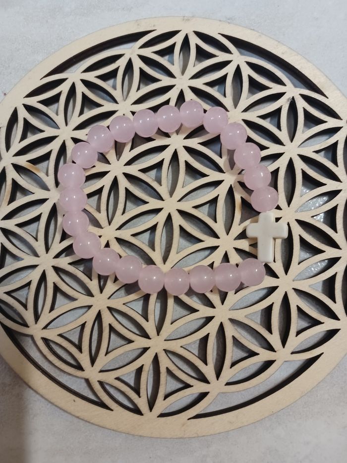 Bracelet quartz rose et croix - photo numéro 1