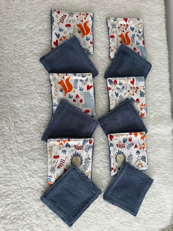 #lingettekmcreation En coton et éponge bambou okeotex Lot de 12, dimension 10 par 10 cm minimum