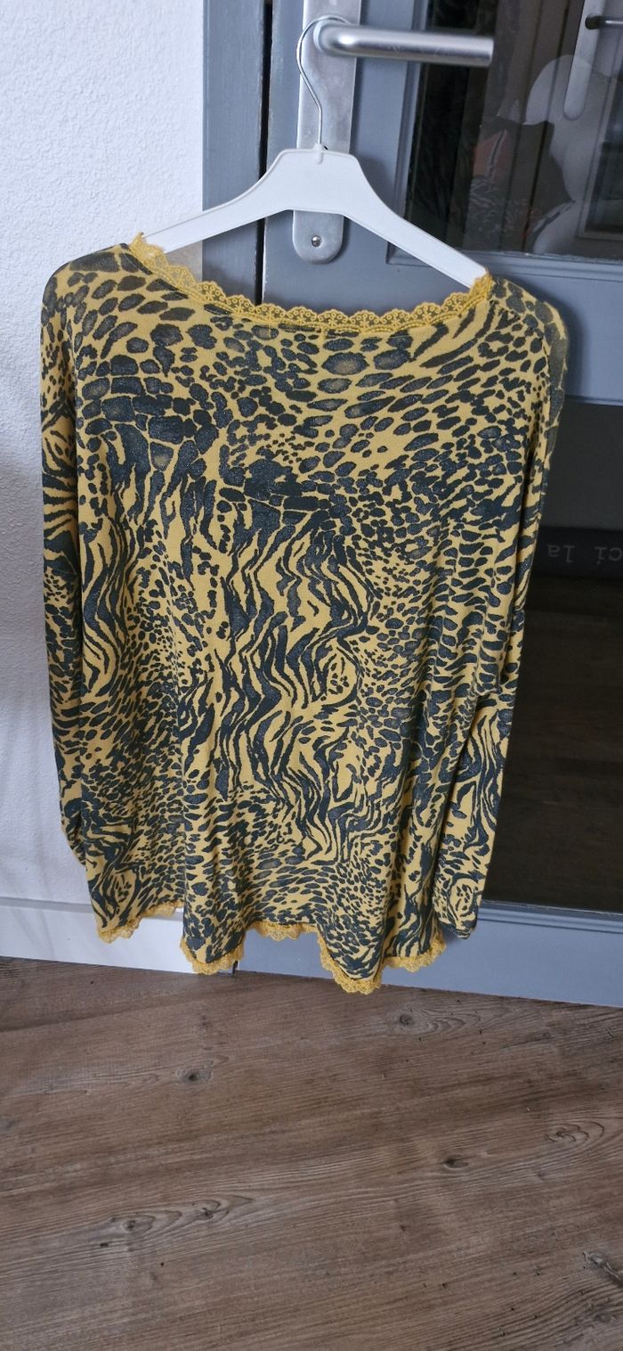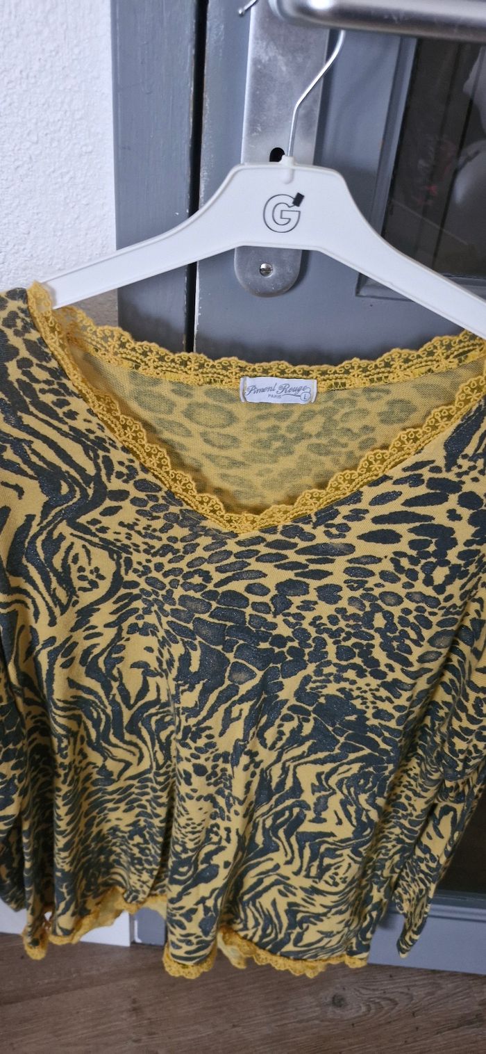 Pull jaune et gris argenté, col V très peu porté, marque piment rouge ,taille L
