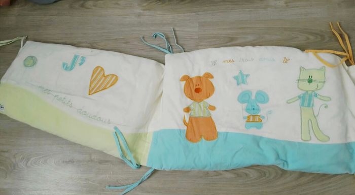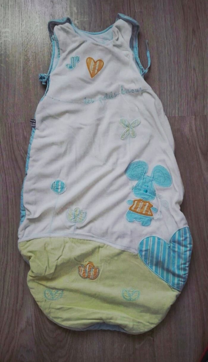 Magnifique ensemble de marque Sauthon composé d'une gigoteuse/turbulette en velours. Jolis motifs et doux coloris