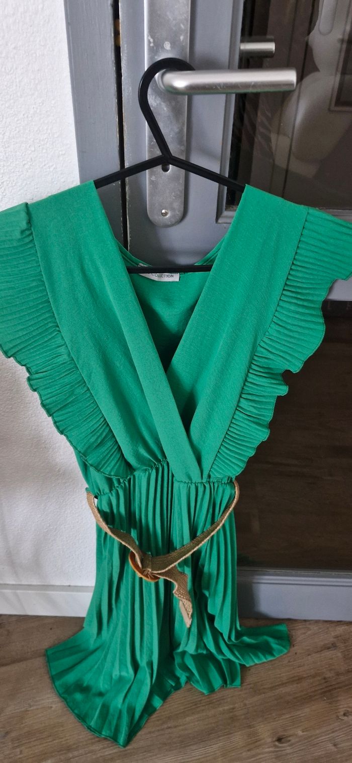 Robe verte porté quelques fois, matière très agréable, plissé dans le bas ,ceinture un peu abîmé