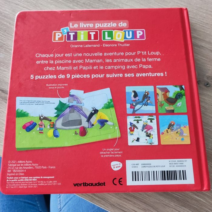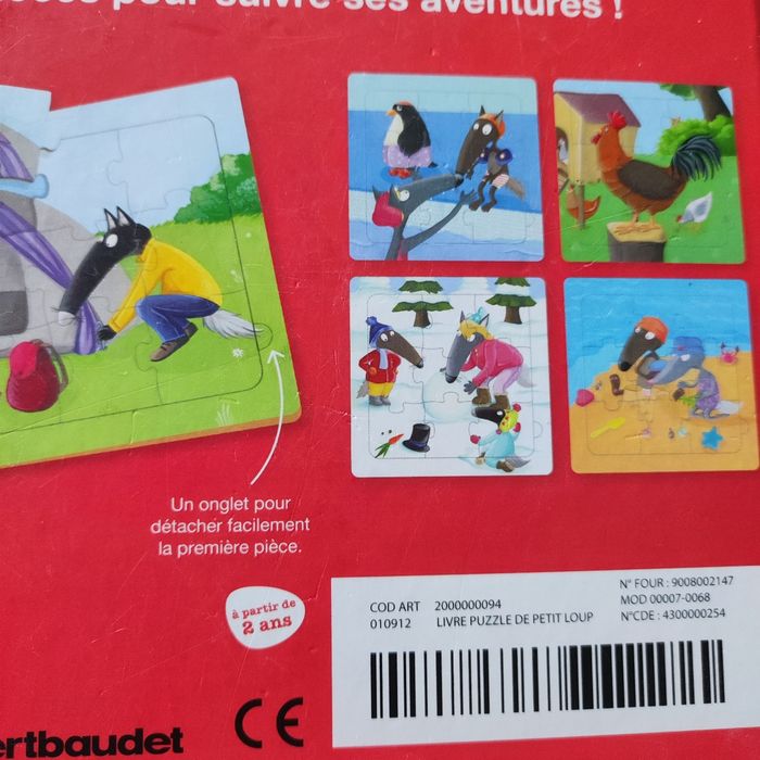 Livre avec 5 puzzles p'tit loup de 9pieces en bon état Quelques pièces légèrement abîmées voir les photos ce qui n'empêche en rien l'utilisation du livre Une petite histoire accompagne les puzzles