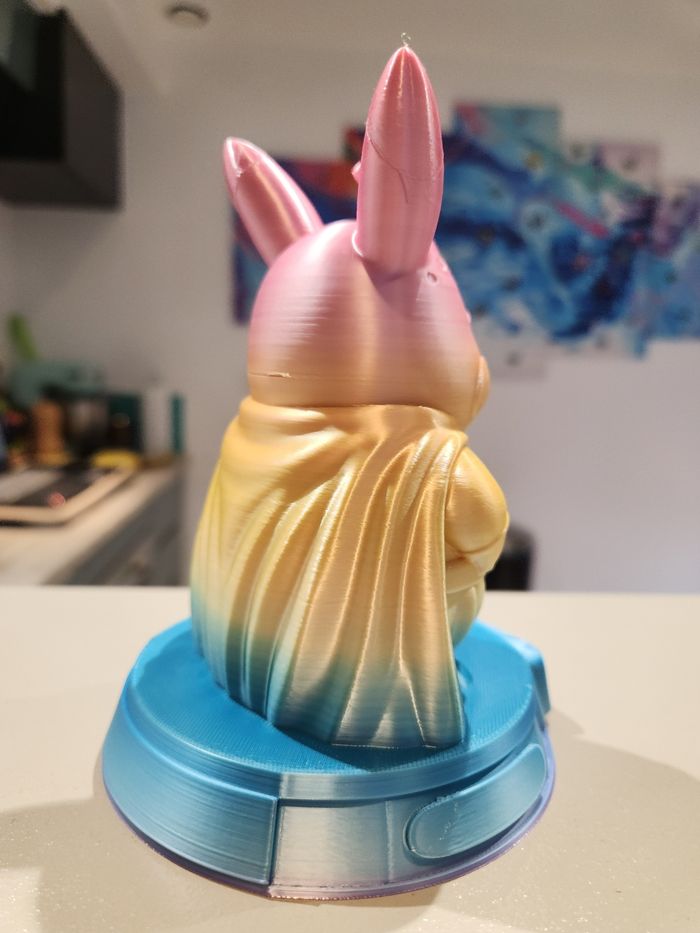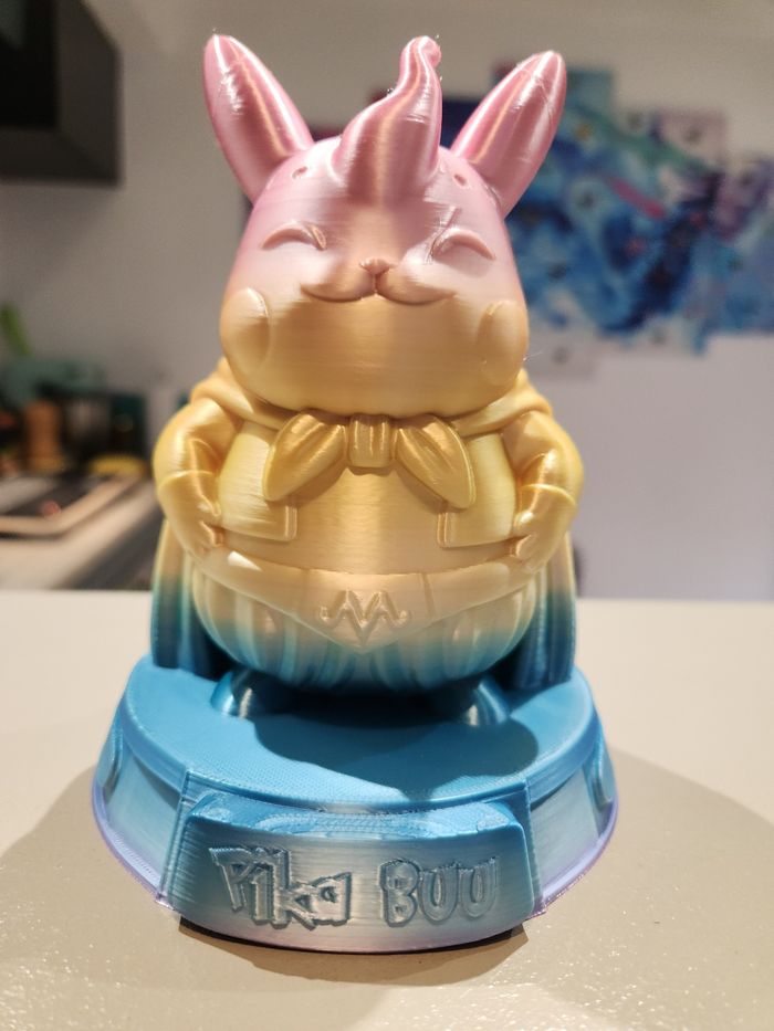 Figurine Pikachu Buu, une création originale inspirée de l’univers Pokémon et de Dragon Ball, mélangeant le style adorable de Pikachu avec les traits iconiques de Majin Buu. Cette figurine est réalisée en impression 3D, avec un dégradé de couleurs soigné et une finition brillante qui met en valeur les détails. Parfaite pour la décoration, la collection ou comme cadeau pour un fan d’univers manga/anime. 🟡 Création non officielle – fan art 🟡 Objet de collection, non destiné à un usage intensif de jouet