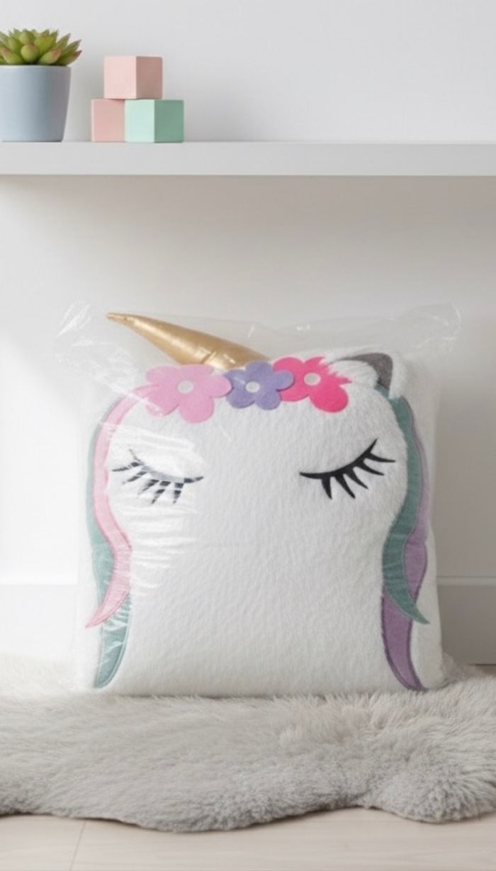 À vendre, magnifique coussin décoratif licorne de la marque Amazon Basics. * État : Neuf, encore sous emballage plastique d'origine. * Design : Visage de licorne brodé avec des fleurs en relief, une corne dorée et une texture "moumoute" très douce. * Dimensions : Carré de 40,6 cm x 40,6 cm (16 x 16 pouces). * Idéal pour : Décoration de chambre d'enfant, cadeau d'anniversaire ou fan de licornes. ✨ Bon à savoir : Un deuxième exemplaire identique est disponible dans mon dressing ! N'hésitez pas à faire un lot pour économiser sur les frais de port.