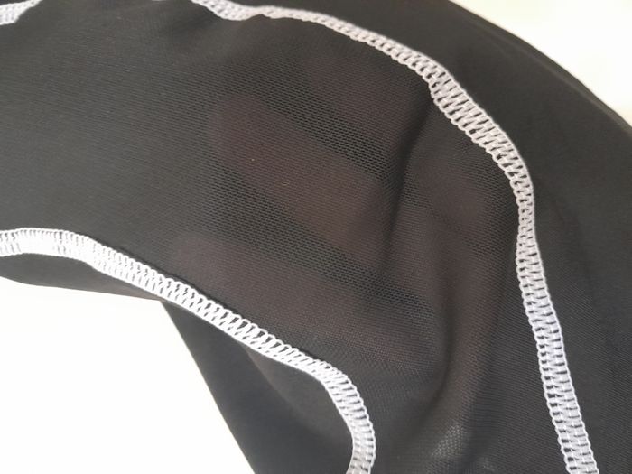 Legging, ajouré sur les jambe, élastique à la taille, bande large Longueur : 90cm Taille en cm : 30 Matière : 96 % Polyester, 4 % Elasthanne Marque : sans étiquette