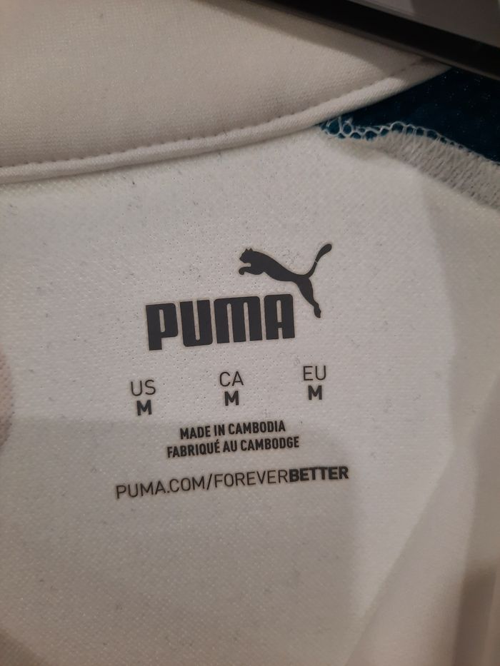 Survêtement PUMA Manchester City blanc et bleu, édition 2021-2022. Taille M – Homme (mesures dispo en photo). 🌟 Détail : logo PUMA et badge Manchester City brodés, zip intégral, design officiel saison 21-22 🧵 Matière : tissu polyester léger et respirant, confortable pour sport & détente ✅ État : très bon (porté peu, aucun défaut) 📦 Envoi rapide sous 48h dans un emballage soigné et recyclable ❓ Une question ? Envoie-moi un message, je réponds vite !