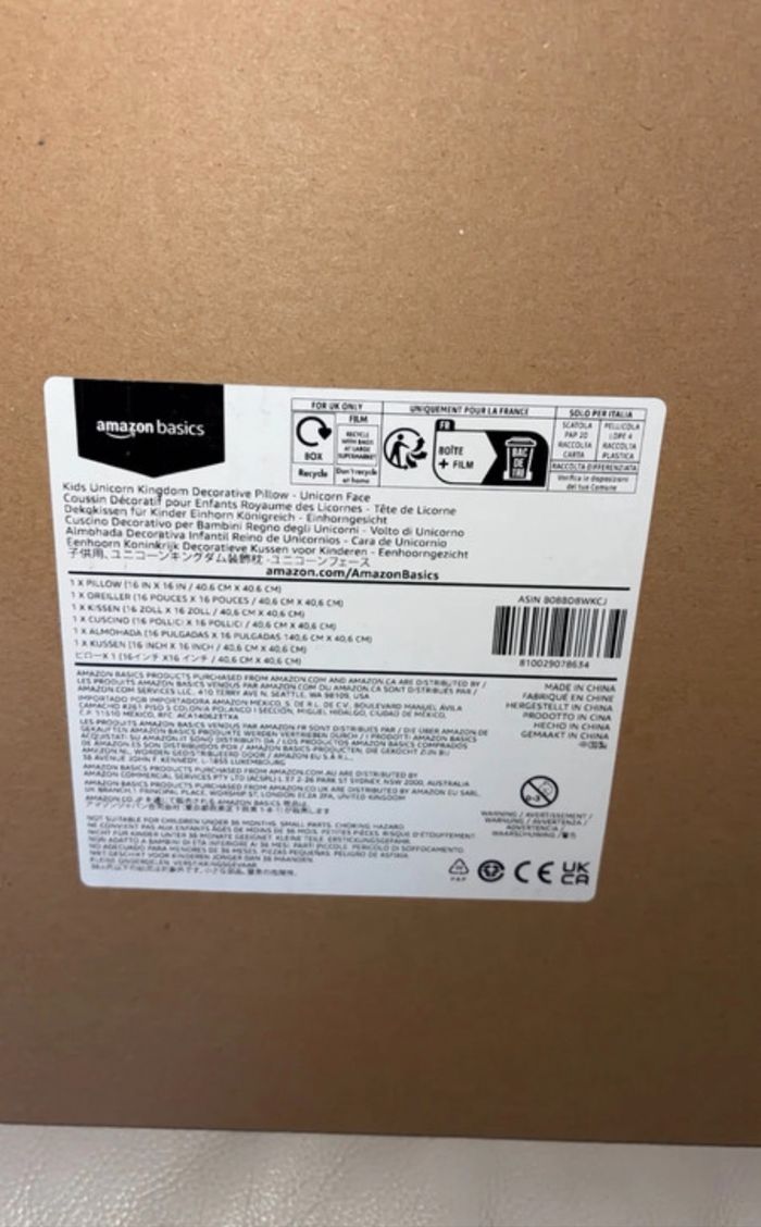 Coussin Licorne Amazon Basics 40x40cm - NEUF sous emballage - photo numéro 3
