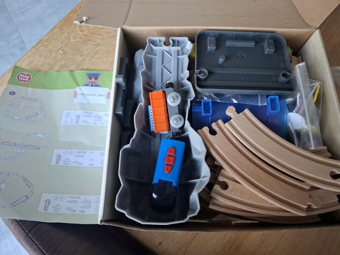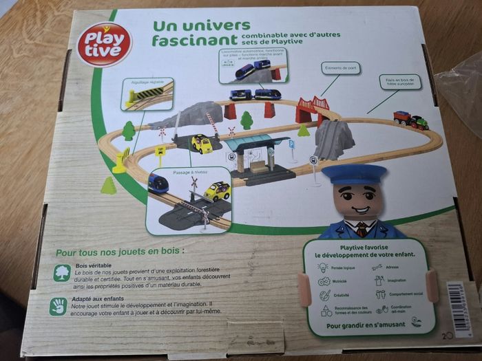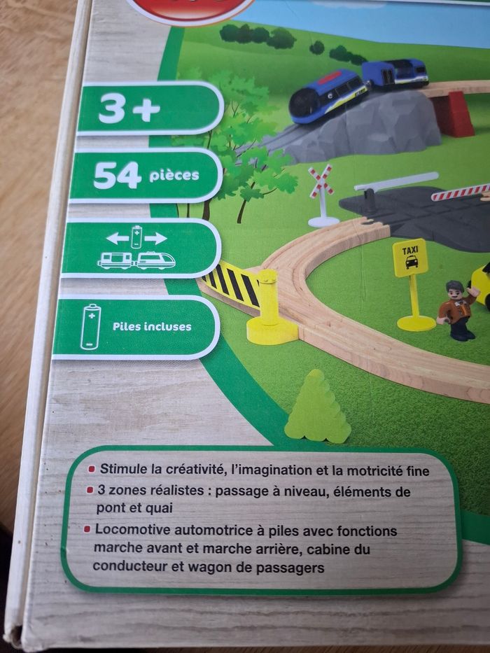 Set de chemin de fer Playtive ( lidl) 54 pieces, coffret complet et toutes les pièces en parfait état Train qui avance seul, jouet en bois