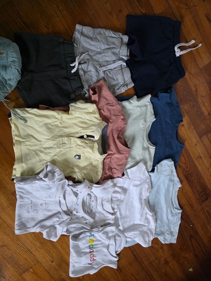Contient : 6 t shirts 3 shorts 1 bob 4 Bodys MC/ Débardeurs Différentes marques : Liefties, Kiabi....