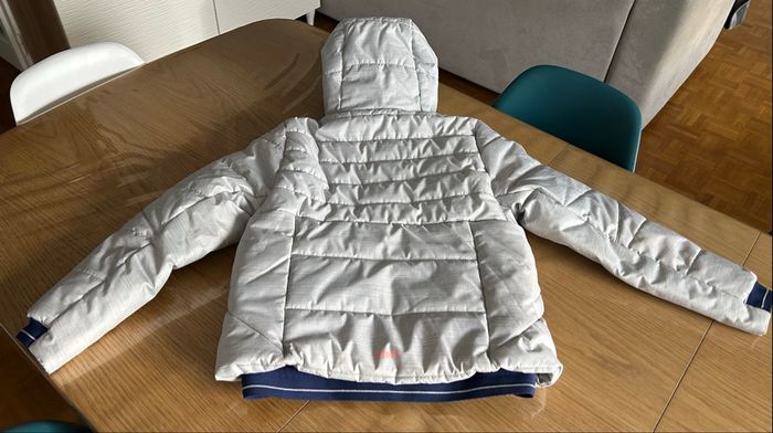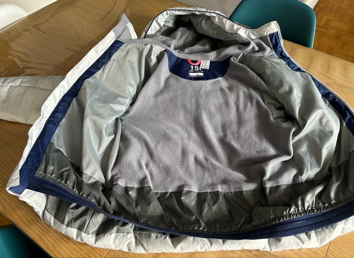 Veste ski gris argent avec fermeture éclair et capuche. Poche latérale pour le forfait