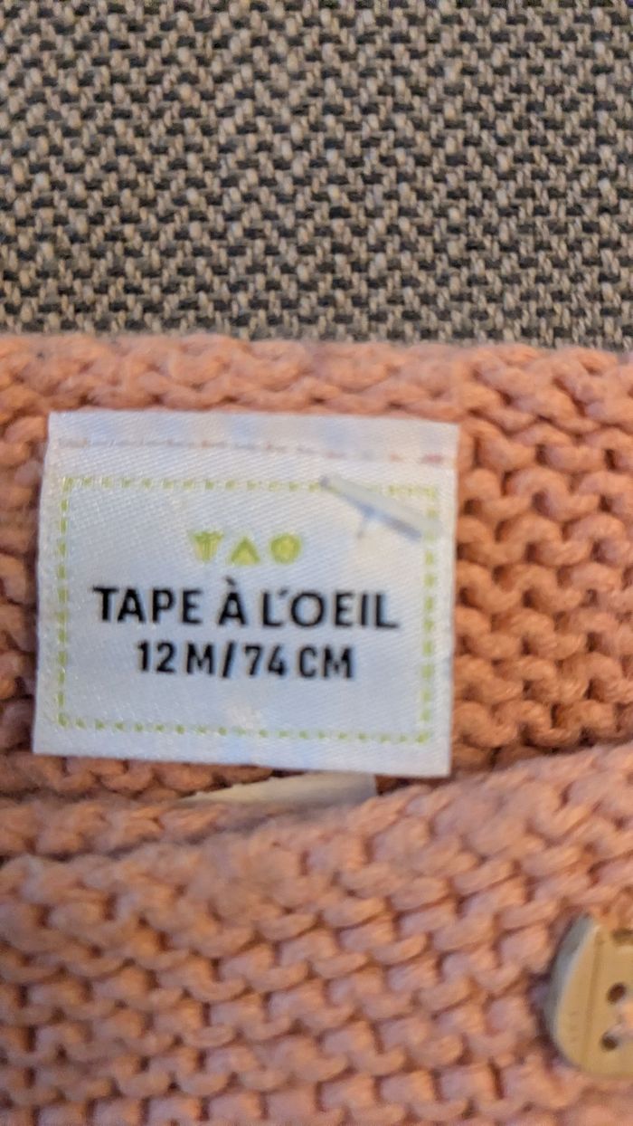 Cardigan manches longues rose/corail taille 12 mois marque Tape à l'oeil  - photo numéro 1