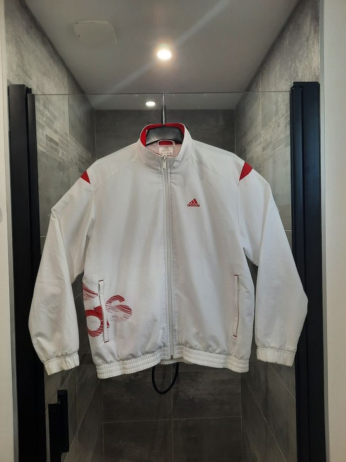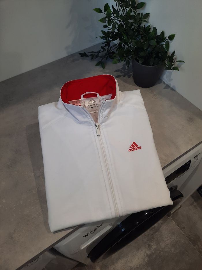 Veste / Gilet Zippé Adidas – Blanc avec Détails Rouges – Taille S - photo numéro 1