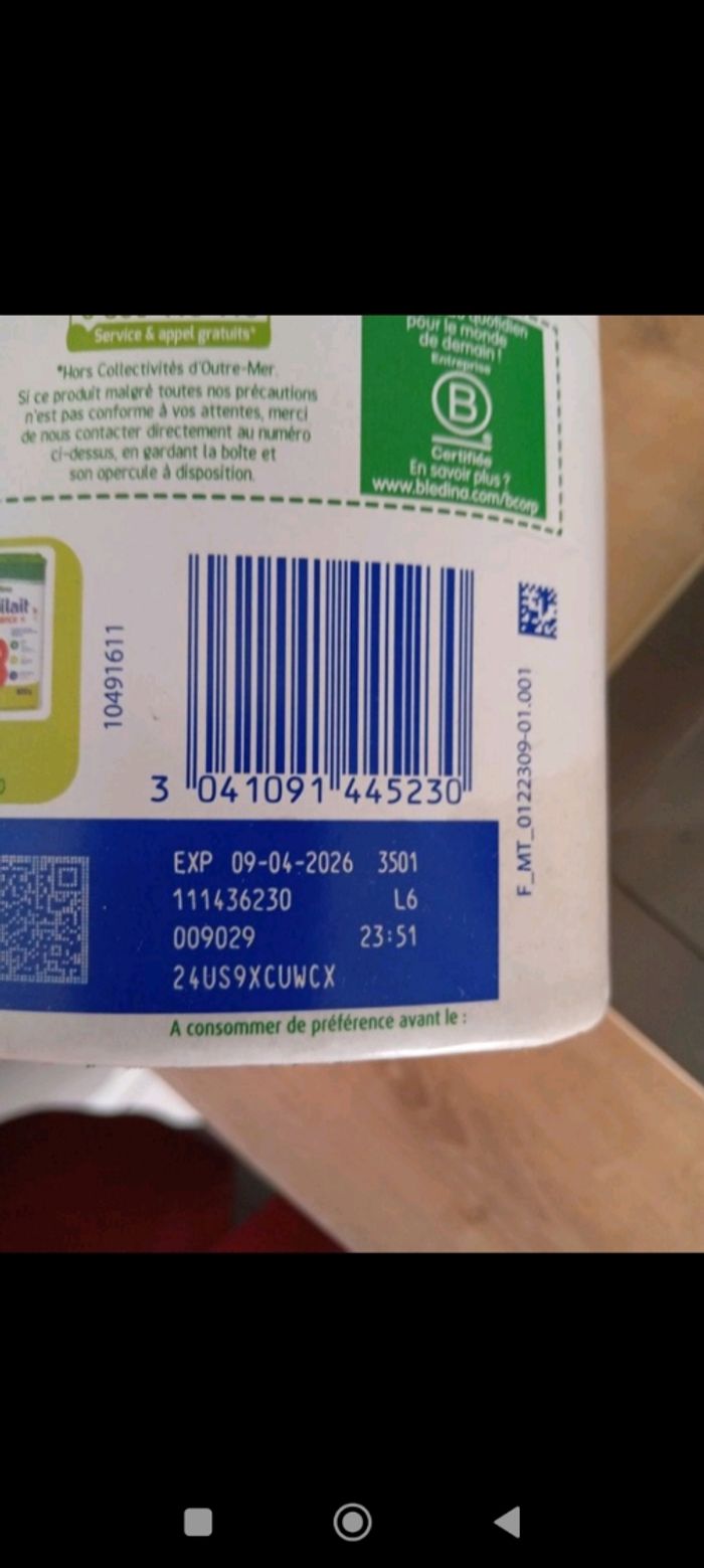 Boite de lait infantile Age 6-12 mois Neuve Date de péremption 09/04/2026