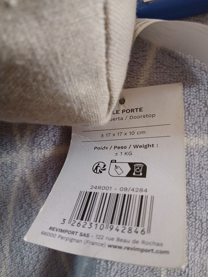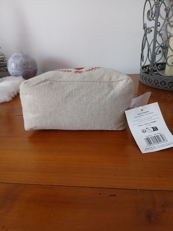 Article Neuf, encore étiqueté. Cale-porte en toile [ coton & polyester] Motif brodé devant; anse en coton. Poids 1 Kg. Hauteur ( sans anse) de 16,5 cm // voir photos pour détails
