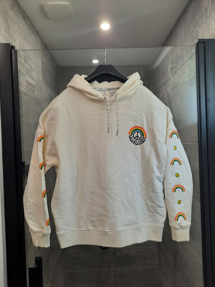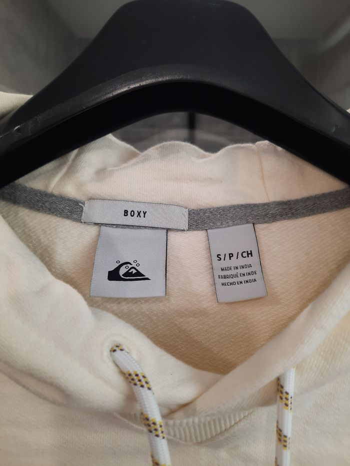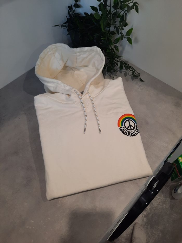 Sweat à capuche Quiksilver beige, coupe décontractée. Taille S – mesures dispo en photo. 🌟 Détail : logo Quiksilver imprimé sur la poitrine 🧶 Matière : coton doux et chaud ✅ État : très bon (porté mais aucun défaut) 📦 Envoi : expédition rapide sous 48h, emballage soigné et recyclable ❓ Besoin d’infos ? Contacte-moi, je réponds rapidement !