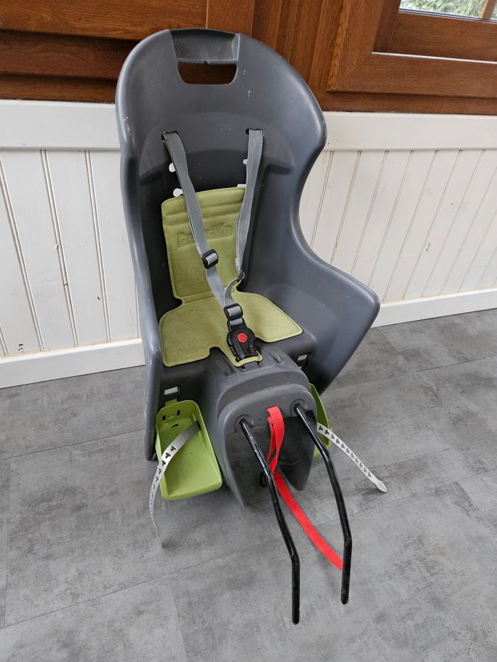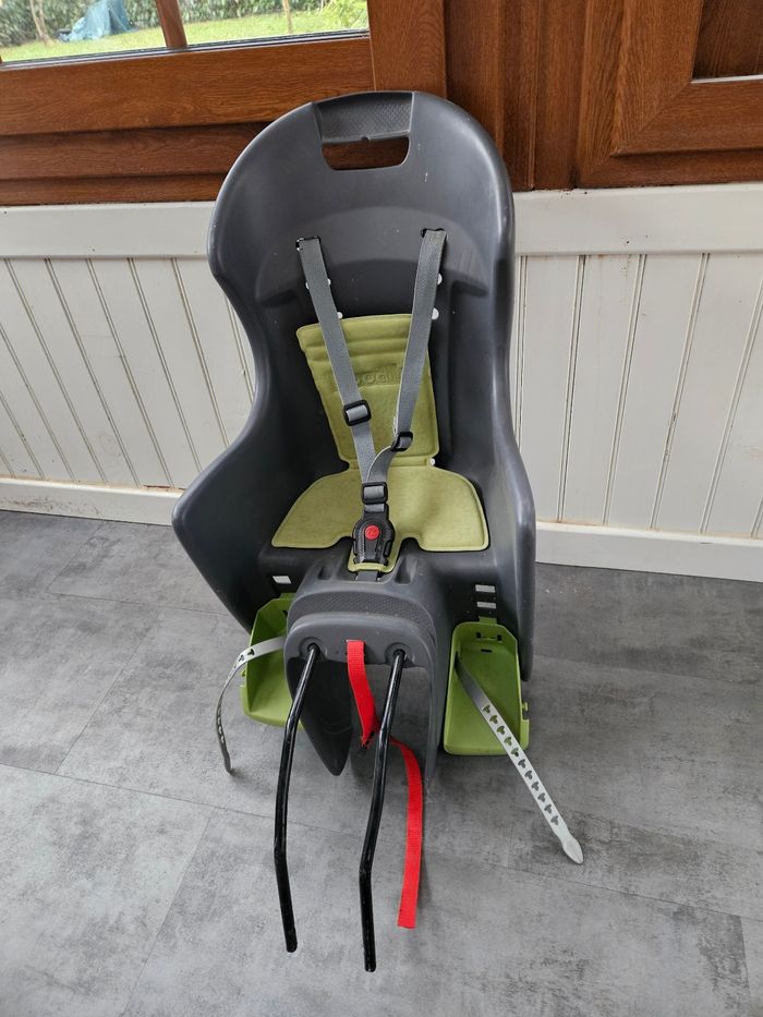 Bonjour, Je vends ce siege qui se fixe derriere un velo adulte pour enmener votre enfant en balade En très bon état avec toutes les attaches.
