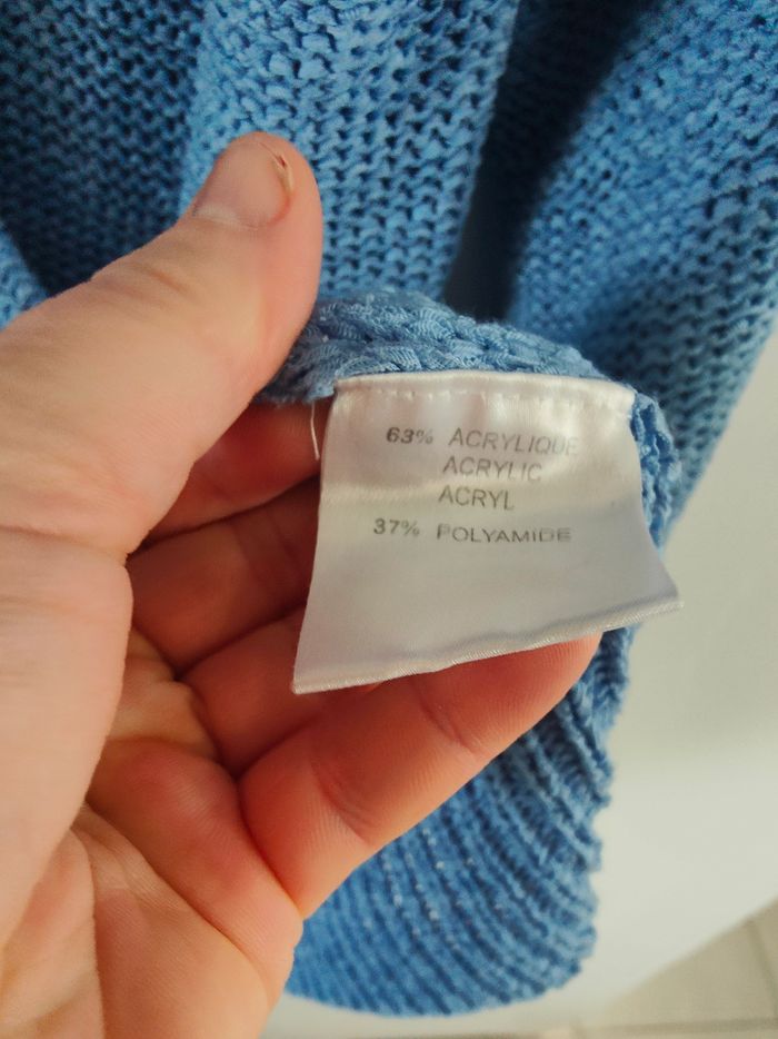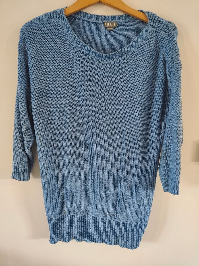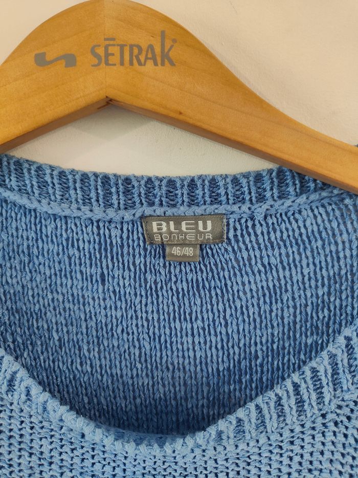 Pull femme bleu taille 46/48 marque bleu bonheur petite imperfections voir photo jointe
