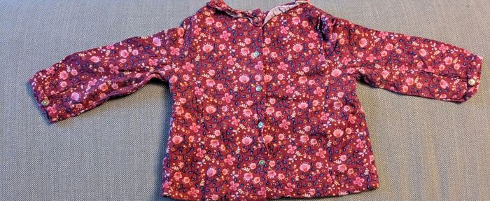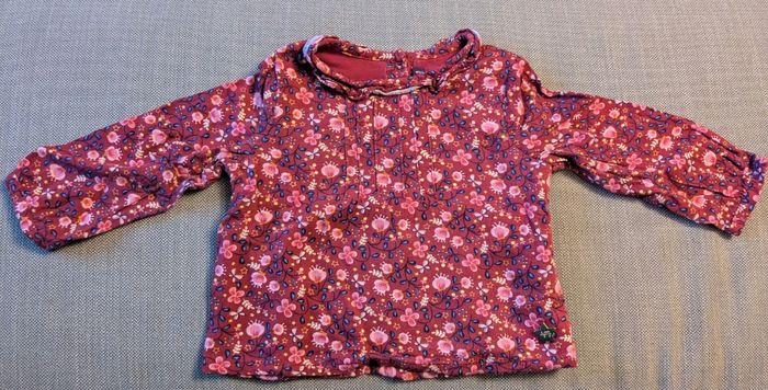 Très joli petit chemisier manches longues de couleur bordeaux et motifs fleuris de la marque Sergent major. Taille 12 mois. Très jolis motifs avec de jolis détails (col, jolis boutons) Matière: 100% coton à l'intérieur et polyester à l'extérieur Très bon état. Envoi rapide