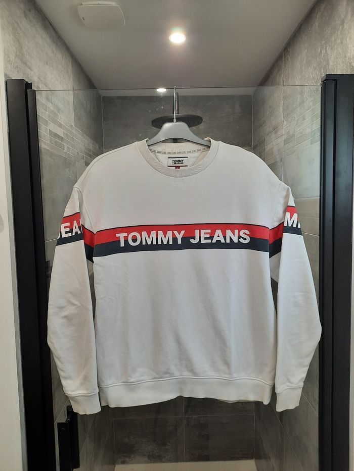 Pull Sweat Tommy Jeans blanc strié rouge noir – Taille S - photo numéro 1