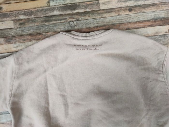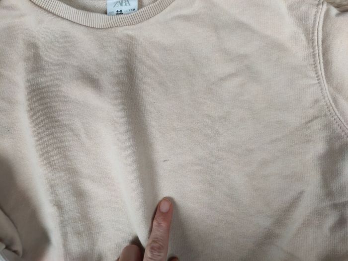 Ensemble porté par mon fils mais parfaitement unisexe. Taille 4 ans. 👉Sweat Zara coloris crème/beige coupe plutôt ample. Une petite tâche estompée montrée en photo. 👉Jean denim noir TAO coupe droite taille élastique, super confortable. D'autres ensembles garçon 4/5 ans dans mon dressing !
