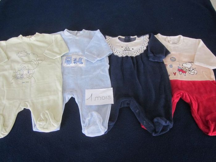 1m, 4 pyjamas velours, snoopy, sucre d'orge