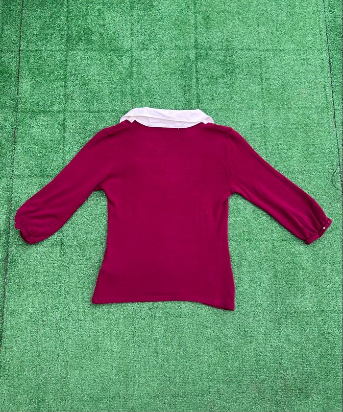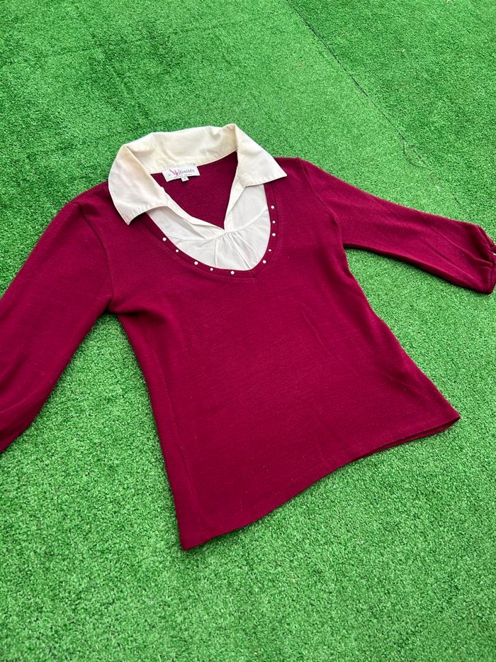 Pull Affinités femme bordeaux intense avec col lavallière blanc cassé plissé et décoré de strass, manches 3/4 légèrement évasées. Style rétro chic pour mi-saison ou hiver léger. Le col est légèrement jauni, j’ai baissé le prix. 🏷️ Marque: Armand Thierry 📏 Longueur: 52 cm 📐 Largeur: 36 cm 👚 Taille: S 🎨 Couleur: violet 🧵 Matières: 66% acrylique, 30% coton, 3% élasthanne, 1% autre 🛍️ N’hésitez pas à faire un lot j’ai beaucoup d’articles en ventes. 📦 Envoi ou remise main propre à Limoges. #Affinites #PullBordeaux #ColLavallière #Strass #PullFemme #ColPlissé #PullRétro #Manches3_4 #PullViolet #AffinitesFemme #PullChic #StrassCol #ModeRétro #PullHiver #PullMiSaison #StyleFéminin #PullEvasé #HautBordeaux #TricotStrass