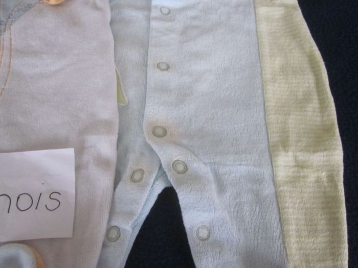 1m, 2 pyjamas velours (décoloration autour pression pour un) + 4 bodies ml, kiabi, nuit d'étoile, pommette