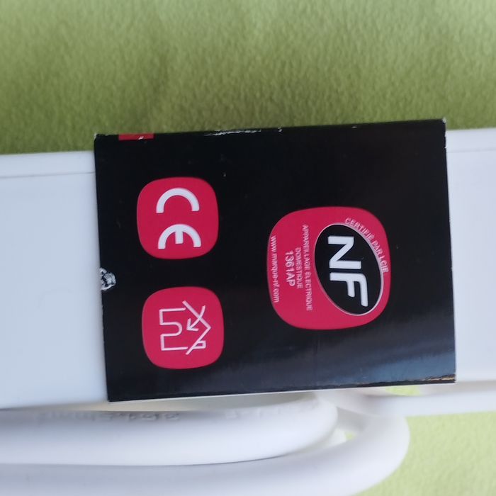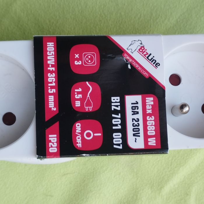 Bloc multiprise 3prises avec interrupteur Lumineux Neuf sceller. Détails techniques:16 A, puissance maximale 3680 W 230 V, Interrupteur lumineux. Prises avec éclipses de protection. Longueur du câble 1m5 Type de câble : H05VV-F 3G1.5 mm² Dimensions (mm) : 206 x 54 x 41. Marques de conformité.