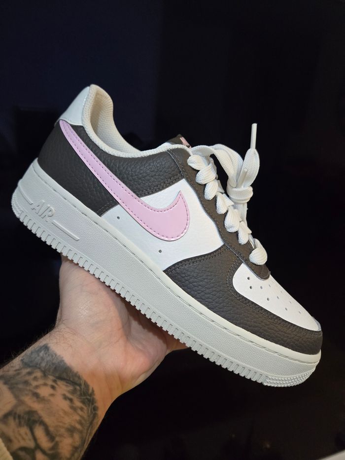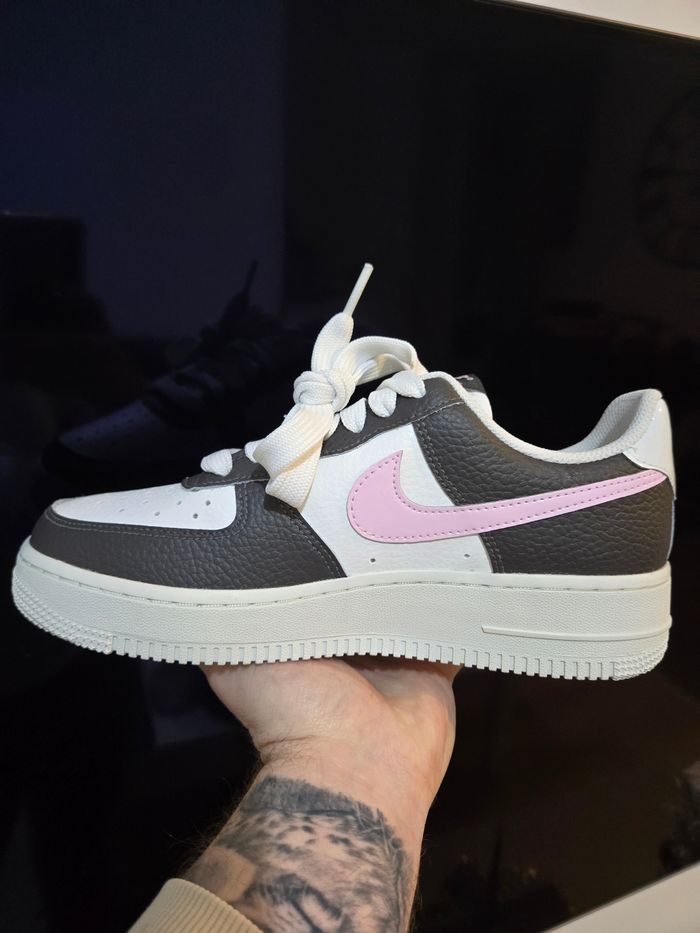 Nike Air Force 1 – Taille 38,5 Neuves, jamais portées. Taille : 38,5. Coloris : blanc sommet avec détails gris foncé et noir, logo rose mousse. État impeccable, aucun défaut. Vendues avec la boîte d’origine sans couvercle. Modèle iconique, confortable et facile à associer avec toutes les tenues.