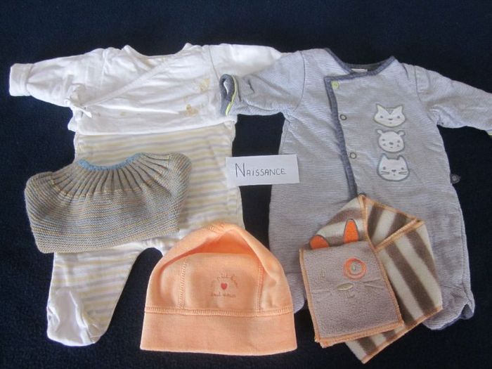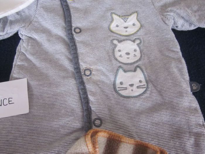 naissance, combi molletonnée + combi molletonnée sans manche et son gilet croisé + brassière + ensemble bonnet/écharpe, obaibi, au bisou, p'tit bisou