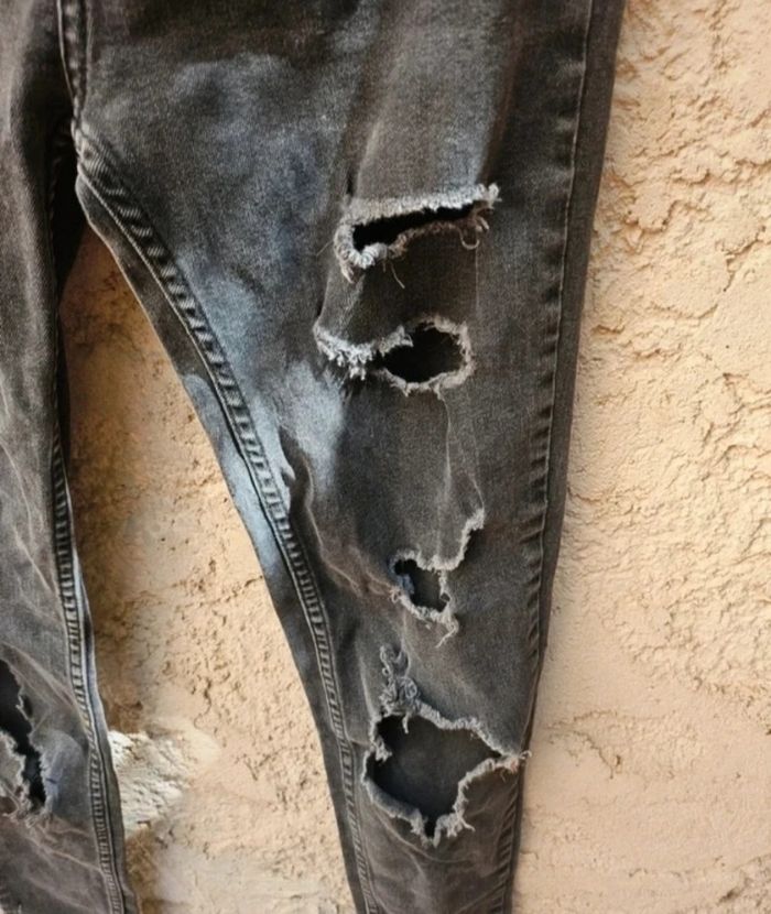 Jean skinny troué aux jambes noir assez moulant Taille haute - photo numéro 7