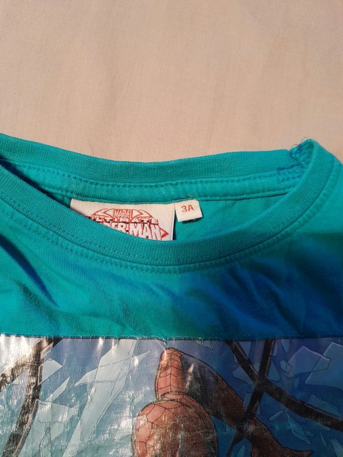 Tee-shirt motif spiderman (l'image est un peu abîmée). Taille 3 ans