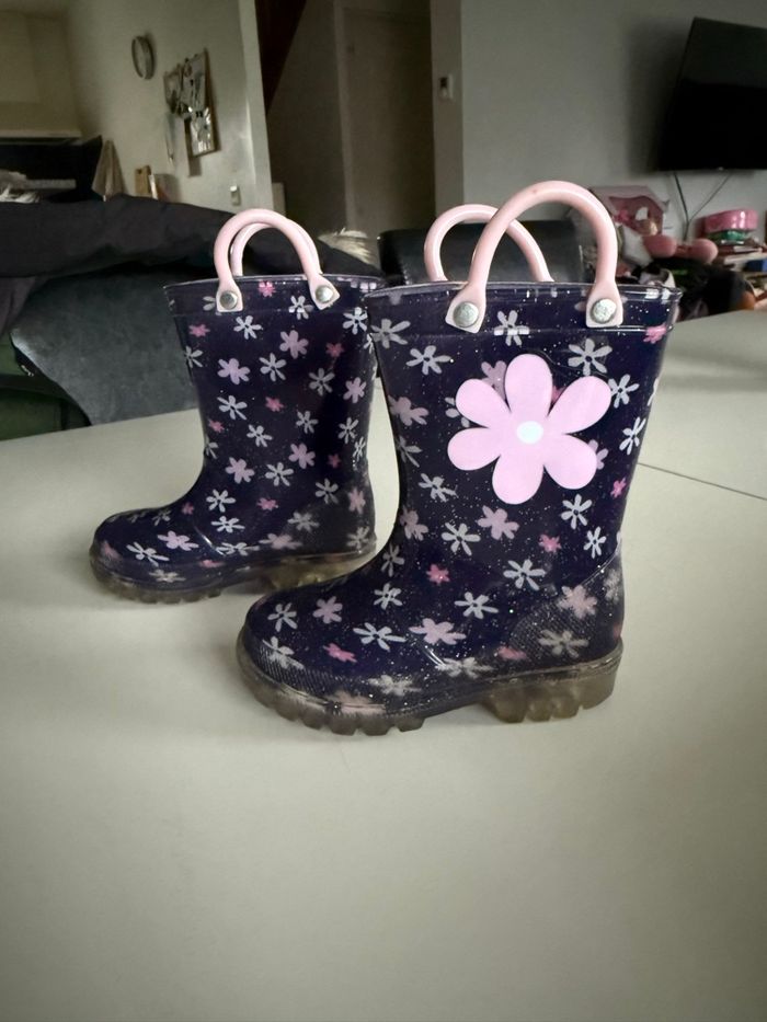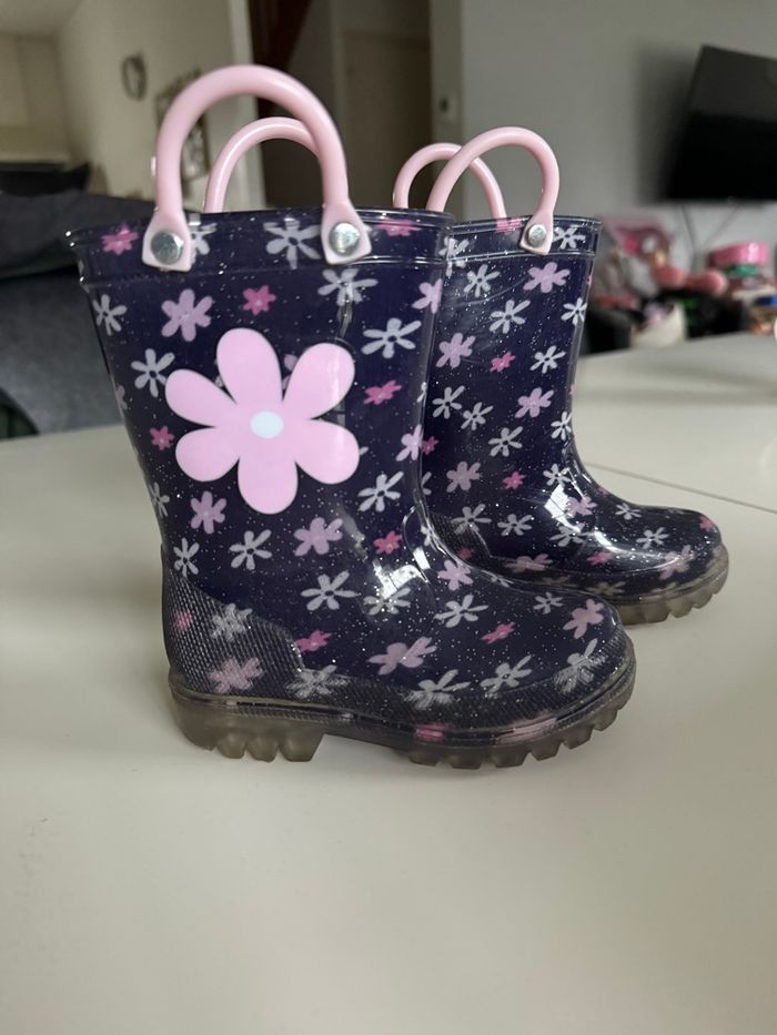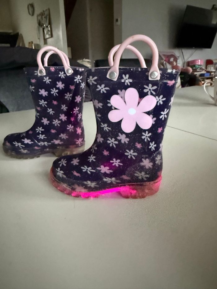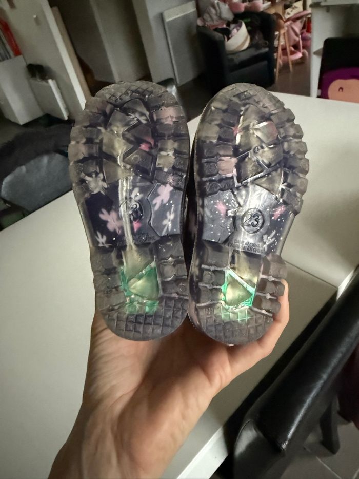 Bottes de pluie à fleur et à paillettes, font de la lumière quand on marche