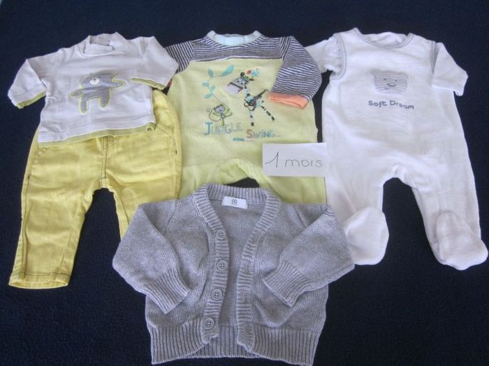 1m, combi velours sans manche + body ml + combi velours sans pied + haut ml + jean + gilet