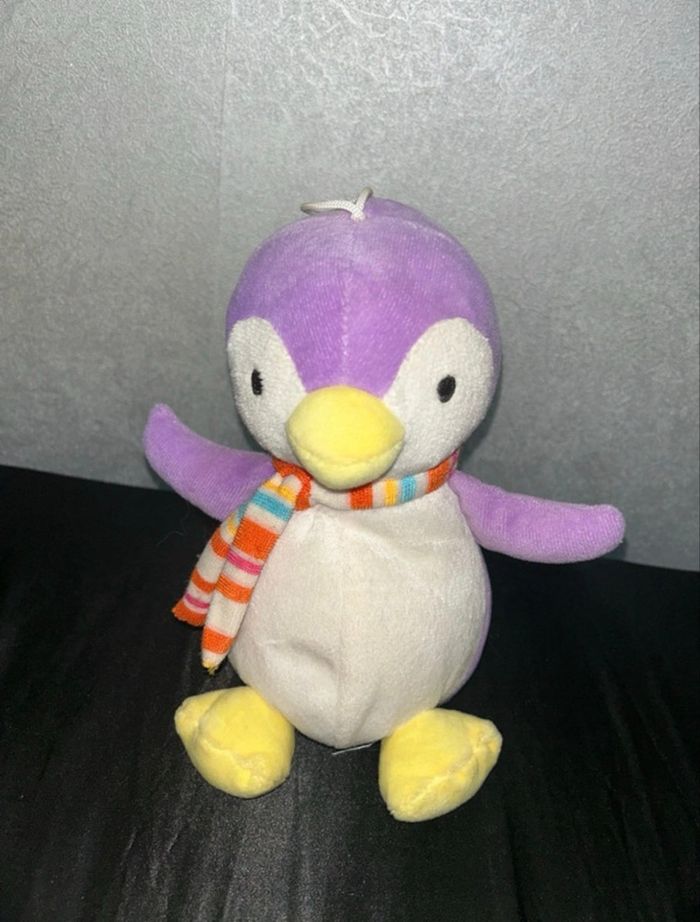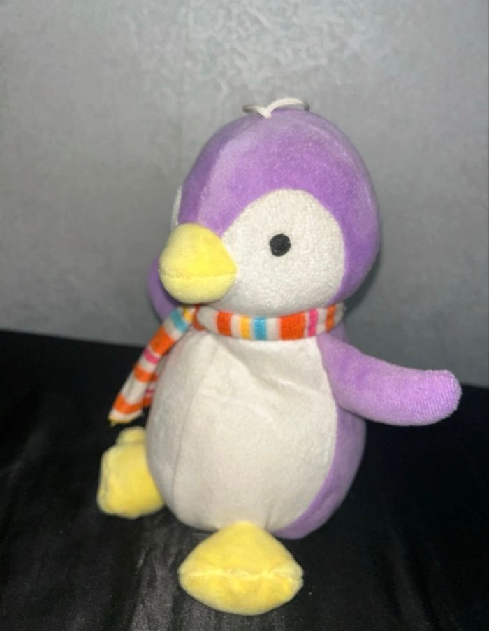 Petite peluche pingouin violet avec une écharpe idéale pour la saison Au-dessus de sa tête, il y a un petit nœud pour pouvoir l’accrocher ou l’amener partout sans la perdre D’autres peluches sont disponibles dans mon dressing, grosses réductions sur les lots