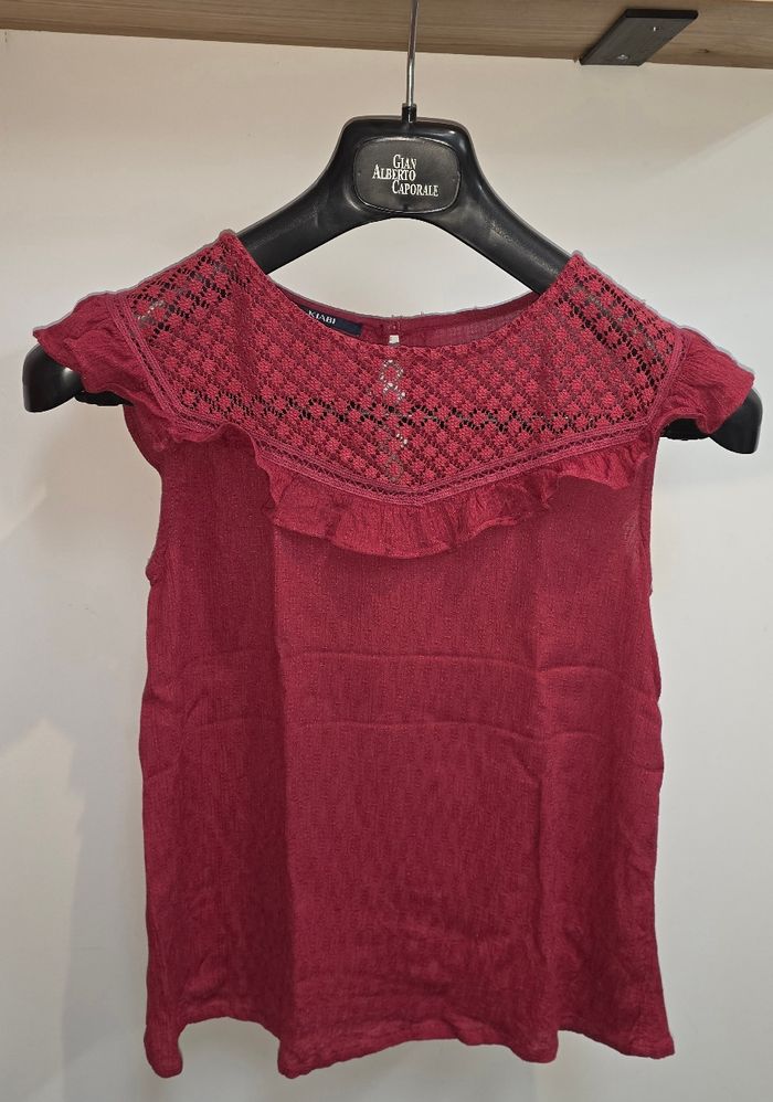 Tee-shirt a manche courte, couleur bordeaux. Marque #kiabi en taille XS. Bouloche un peu en bas ( voir photo ). Remises sur lots activé ✅️ De plus, moins de frais de livraison 🪙📦 Envois rapide et soigné ! 🚚