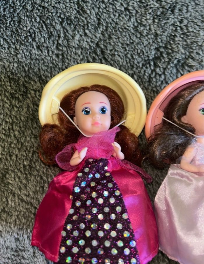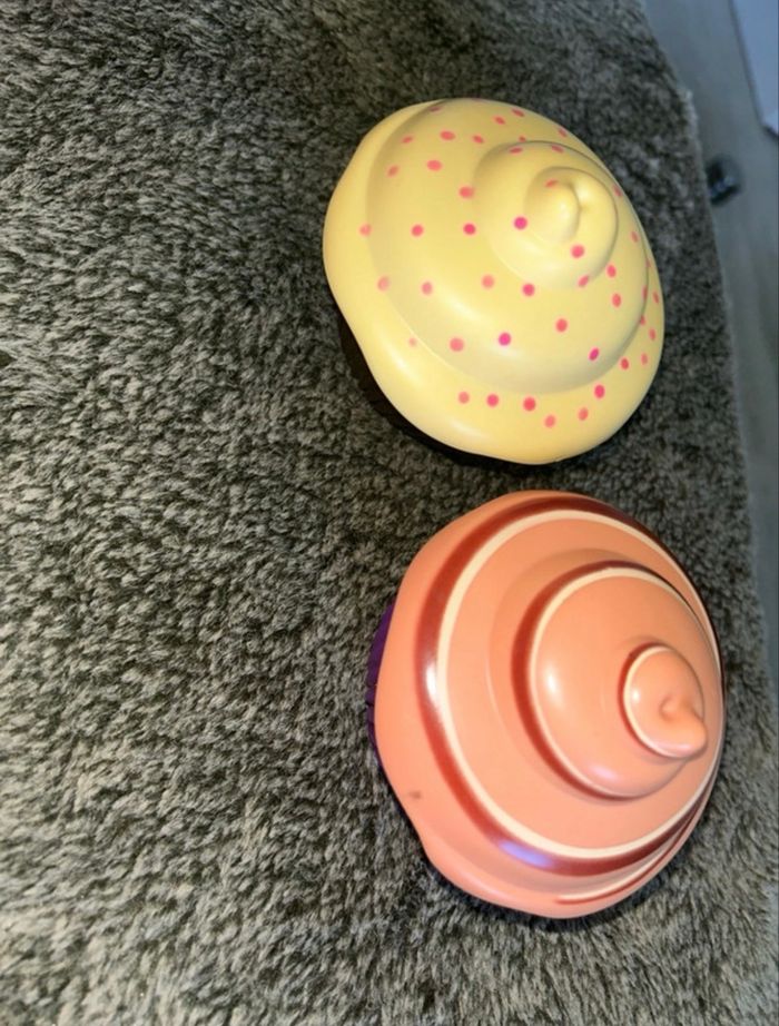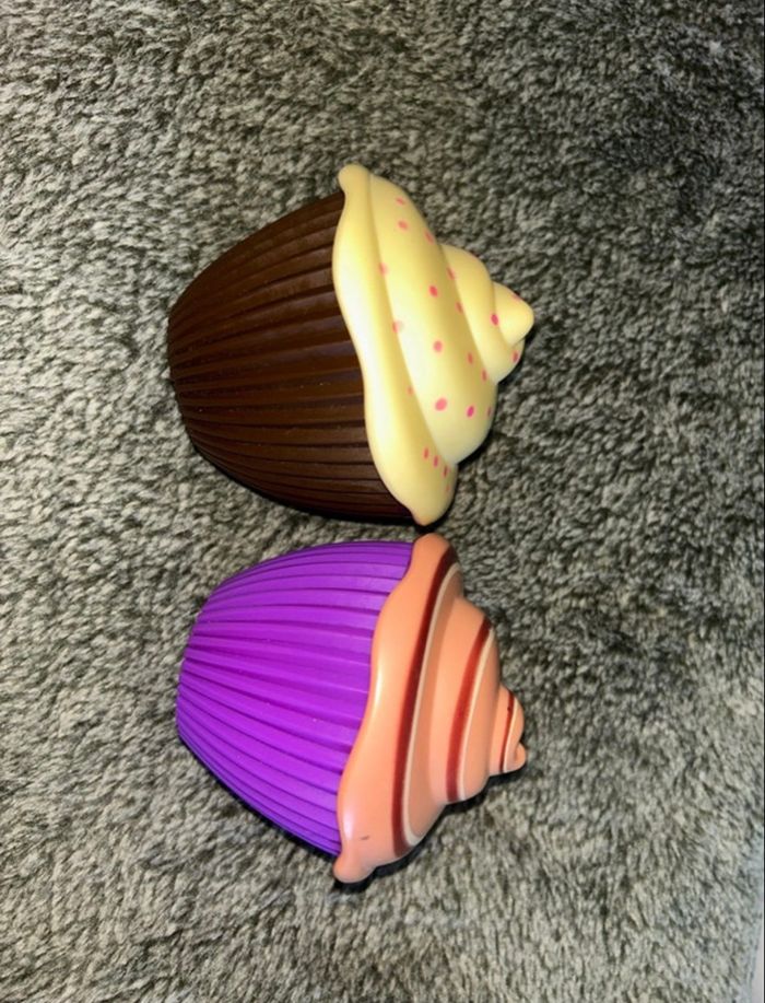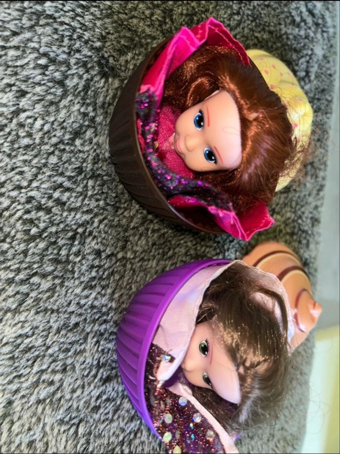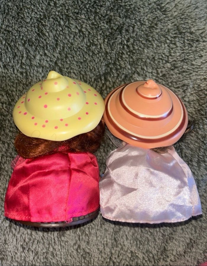 Poupée cupcake lot de 2 Une au parfum chocolat et l’autre vanille Elles ont quelques légers défaut et les couleur sont un peu passer ce qui explique le prix