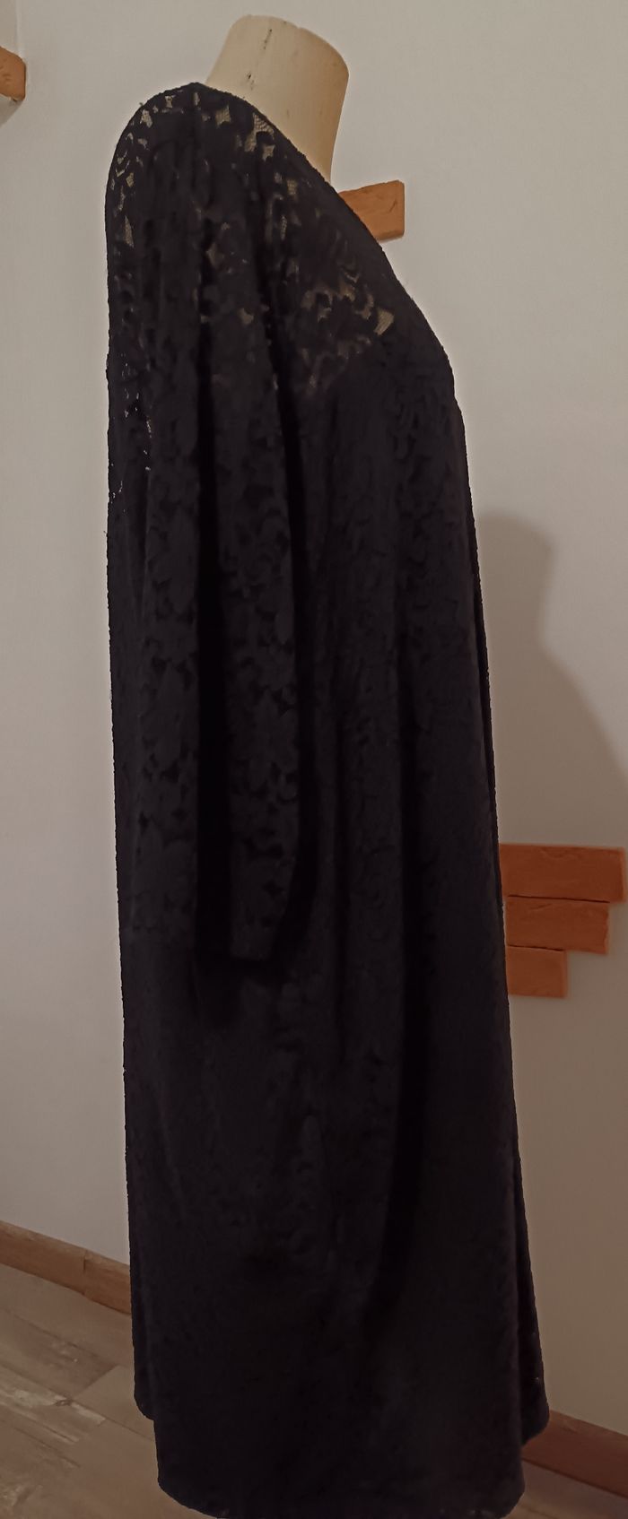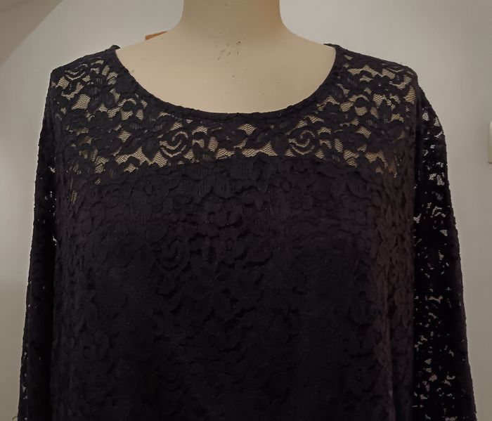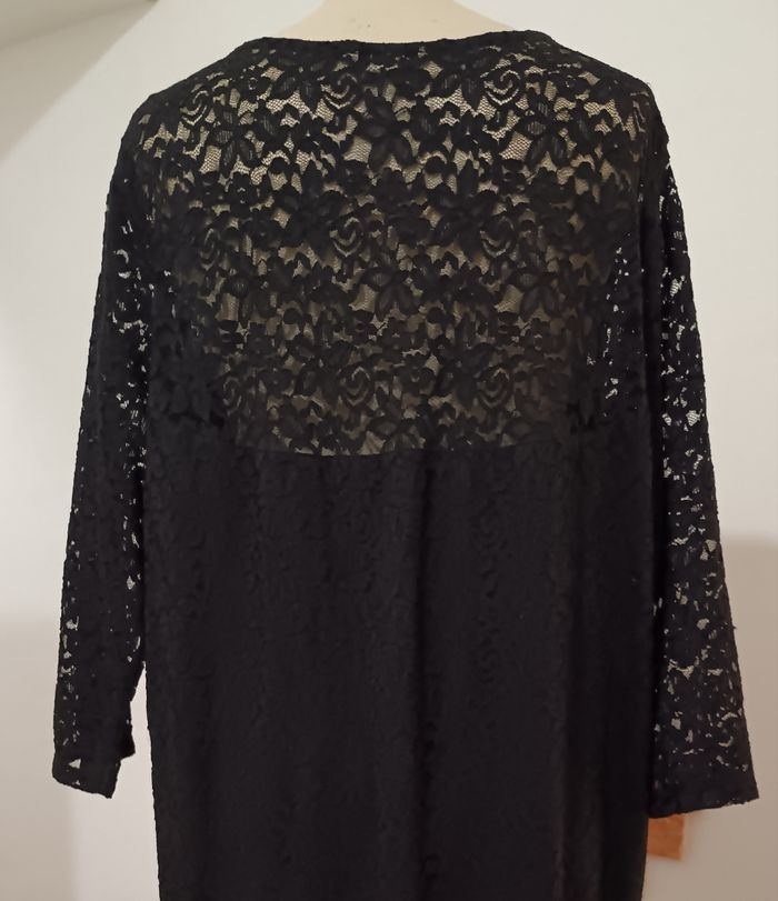 Robe longue noire ajouré en superposition et non transparente car doublure sauf col et manches.