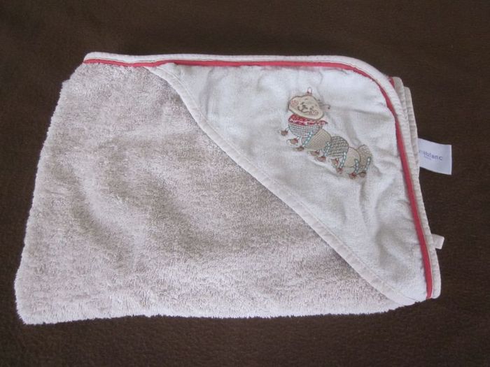 grande sortie de bain, éponge, carré blanc, obligée de mettre neuve avec étiquette pour ce genre d'article mais bien déjà utilisé