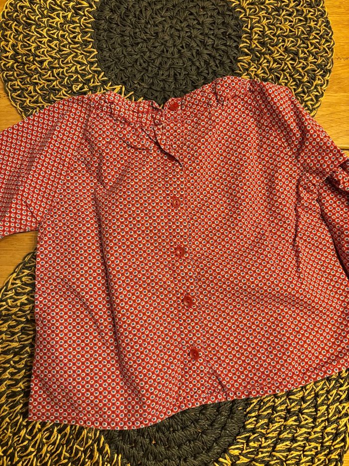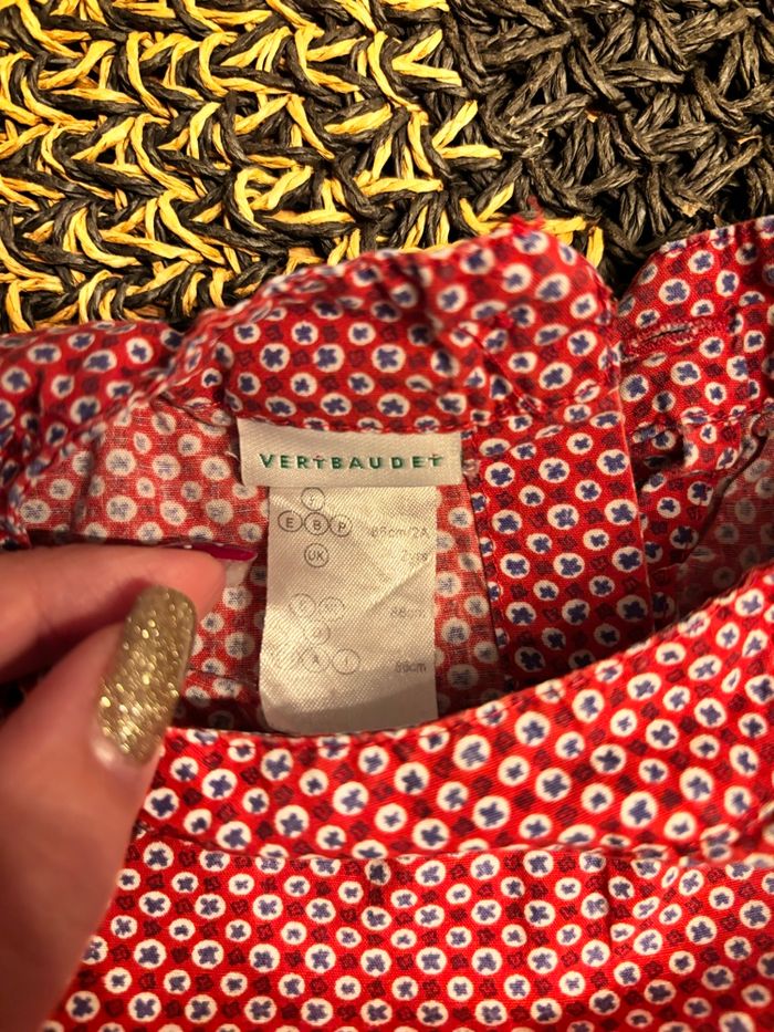 Très jolie blouse manche longue verbaudet 86cm 2 ans, excellent état. Rouge bordeaux à motifs.