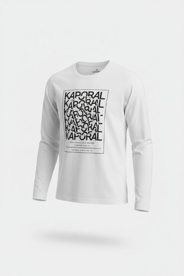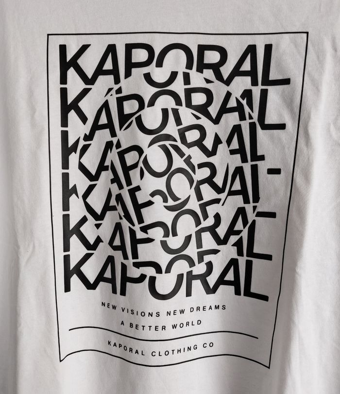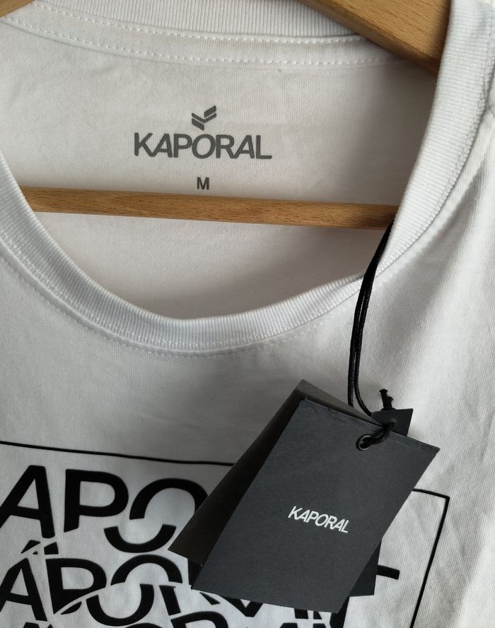 🧔 T-shirt à manches longues blanc, avec logo imprimé noir. 🧔 Taille M 🧔 Marque : Kaporal 🧔 Neuf avec étiquette