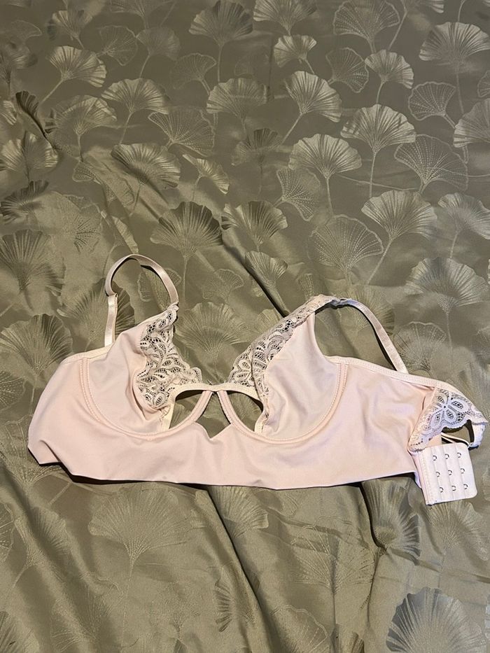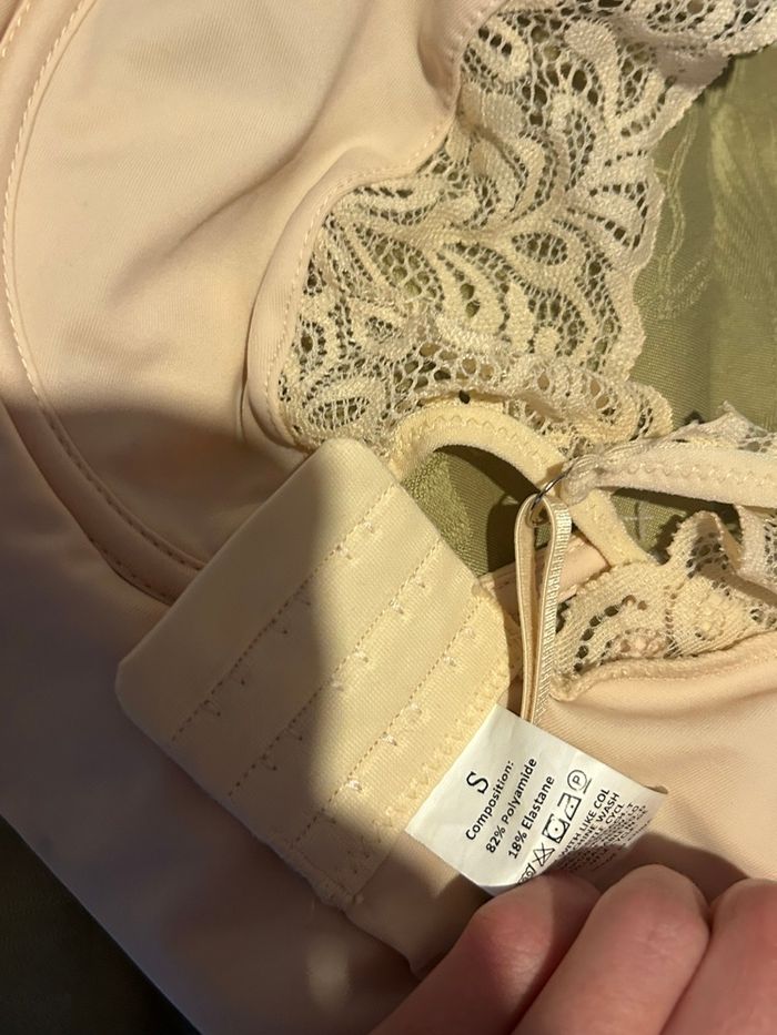Magnifique top couleur beige/crème, très élégant et féminin. La dentelle délicate sur le décolleté apporte une touche raffinée, avec un joli détail croisé à l’avant qui sublime la poitrine sans être trop voyant. 🌸 Détails : • Taille S • Couleur : beige / nude • Dentelle fine et douce • Matière confortable, agréable à porter • Maintien léger, parfait au quotidien • Coupe flatteuse, met très bien en valeur la silhouette
