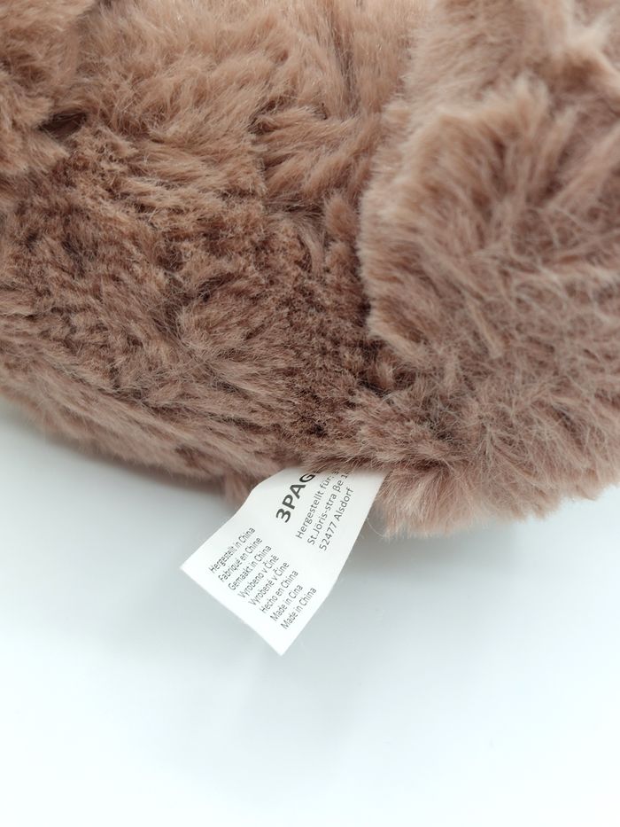 Peluche doudou ours marron écru 3Pagen écharpe bonnet rouge blanc carreaux 18 cm - photo numéro 7